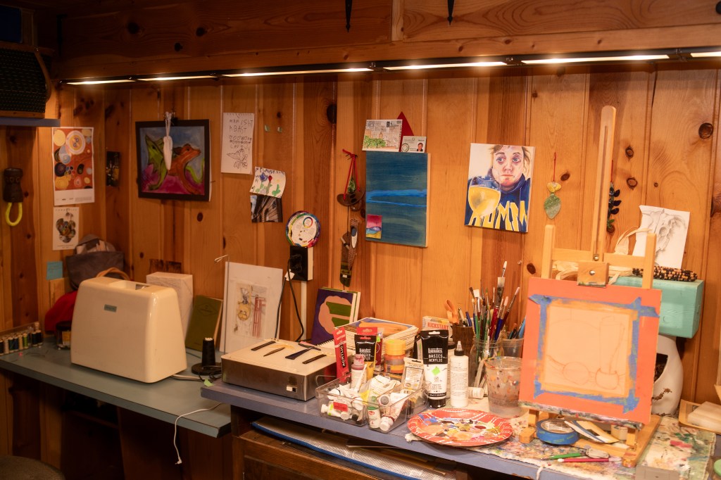 Paula’s studio has a place for painting and sewing. Photo by Jon Carnes