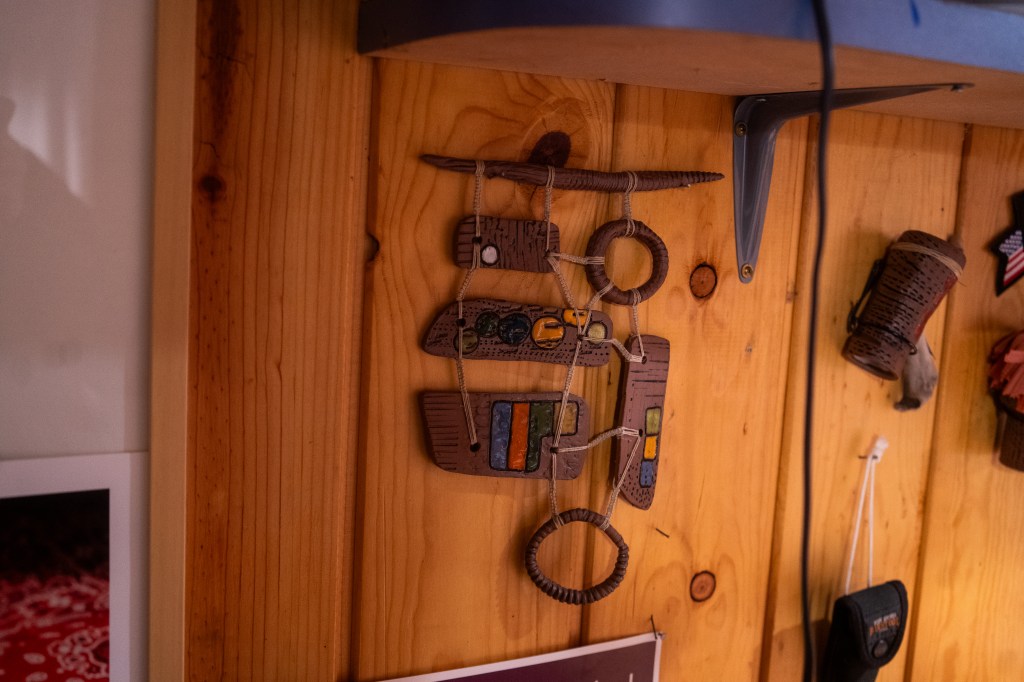 Some of Paula’s ceramic work hanging in her studio. Photo by Jon Carnes