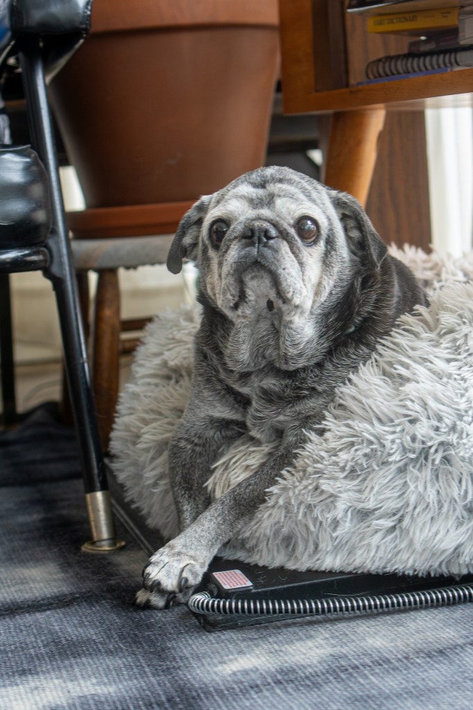 Mavis spends nearly all her time snoozing on the heating pad in the sunroom. Photo by Jon Carnes