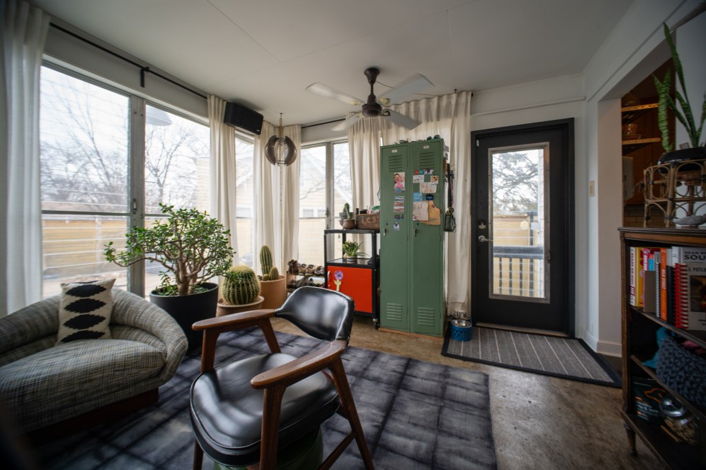 The sunroom has glass shutters on three of the walls and is open to the kitchen and dining room. It’s an incredibly serene space to listen to music and read. Photo by Jon Carnes