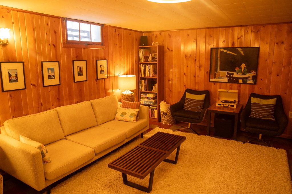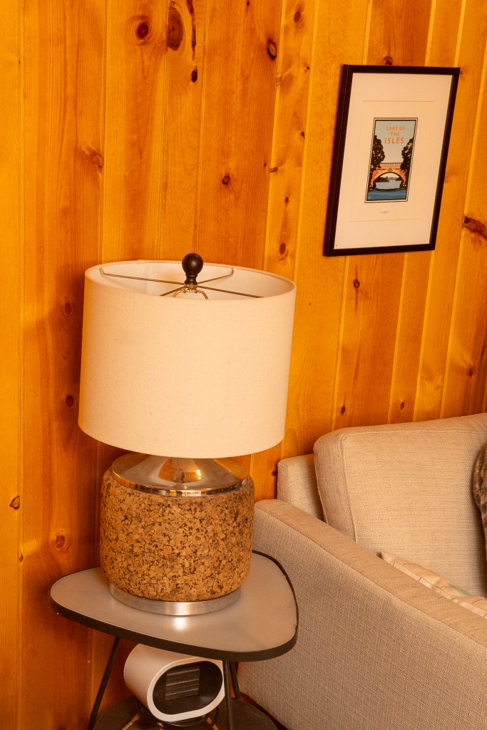 The cork lamps in Dan’s basement are a timeless style, picked up at the thrift store.