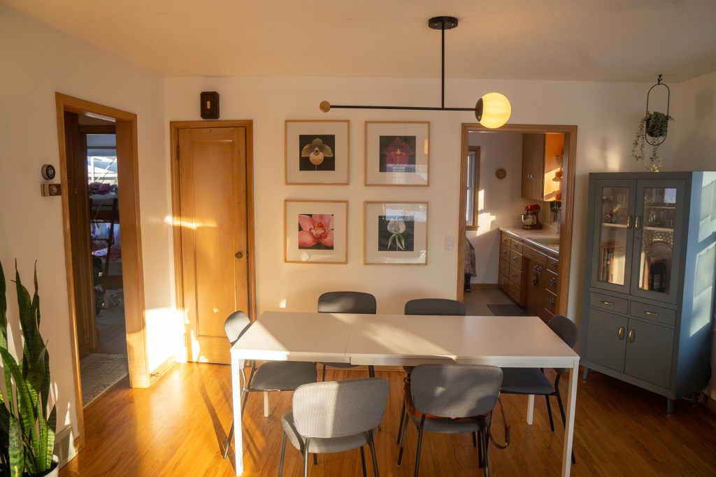 Dan’s dining room is warm, welcoming, and a little mid-century modern.