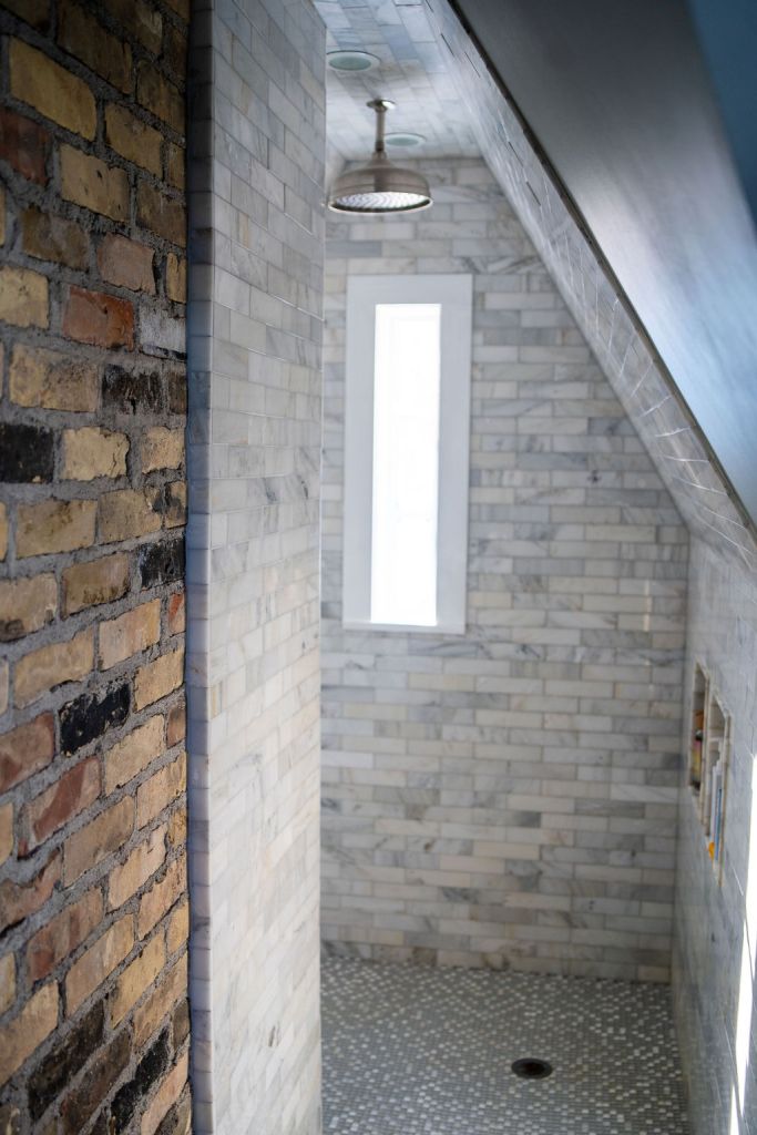 The shower is also spacious and filled with light. Photo by Jon Carnes