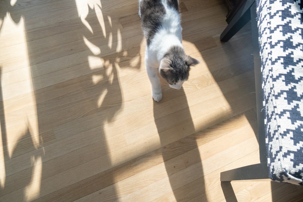 Rory the cat struts through the sunroom.