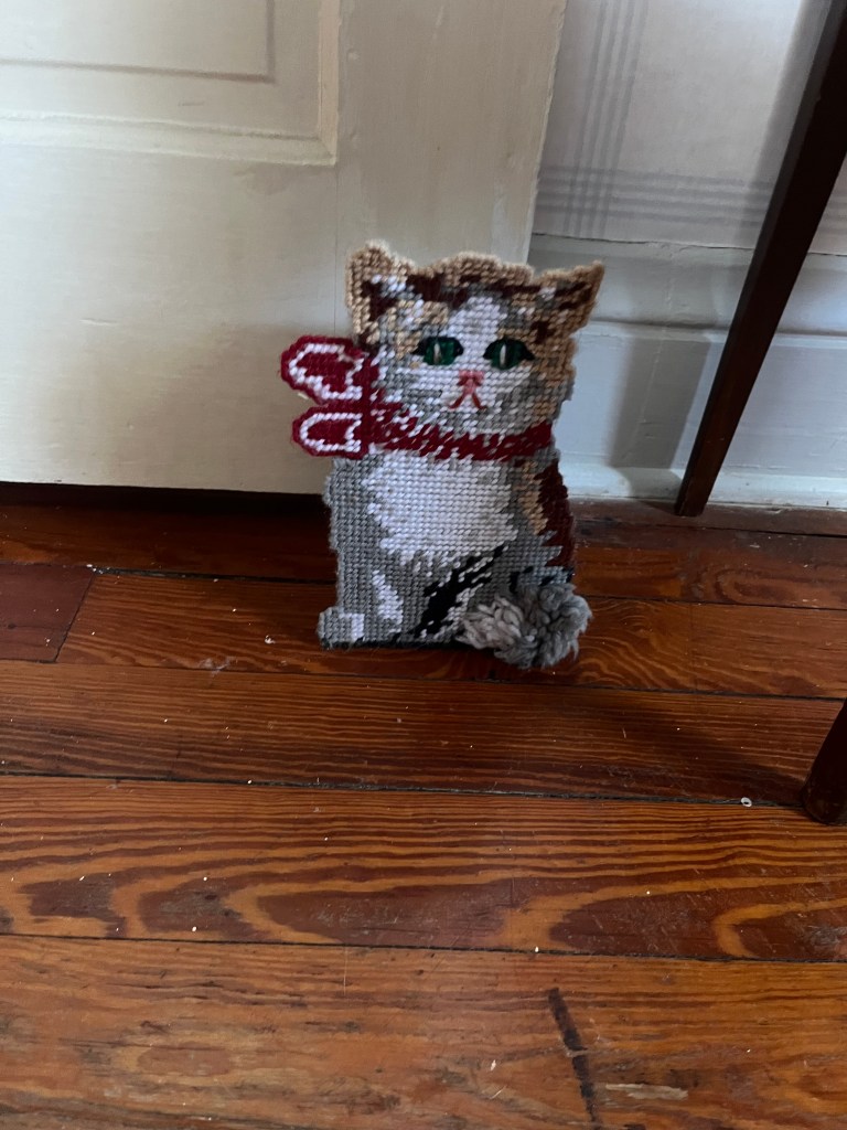 Ethel’s woven cat doorstop lives on with Michelle and Eric.
